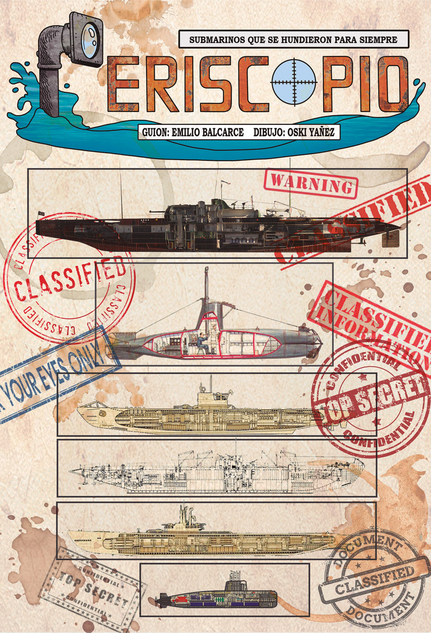 Periscopio recoge varias historias reales sobre submarinos que acabaron hundidos en el fondo del mar. Ofrece, además, una amplia visión de conjunto, pues recorre desde el primer submarino que entró en combate en la guerra de Secesión hasta algún caso reciente. Así, conoceremos el devenir del Surcouf, de la Armada francesa, por entonces el submarino más grande del mundo, que portaba un hidroavión en su interior y que tuvo una historia muy particular al quedar Francia como territorio ocupado durante la Segunda Guerra Mundial. La historia del submarino argentino Ara San Juan y del italiano Macallé, cuyos avatares, aun separados por décadas, se dirían interconectados, se nos narra en paralelo. Del frente del Pacífico se rescatan varias historias, como la de los cinco submarinos enanos nipones que atacaron Pearl Harbor o el USS TANG SS306, uno de los más activos de la Armada estadounidense. No podía faltar el misterio del U-333, sobre el cual este cómic aporta toda la documentación conocida. En suma, Periscopio nos muestra historias reales, sorprendentes, con tripulaciones al límite, rayando en el heroísmo, gracias a la documentación de un guionista tan experimentado como Emilio Balcarce y a la narrativa que despliega el dibujante Oski Yañez;una invitación a sumergirse en la historia.